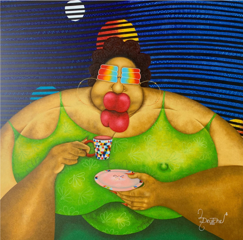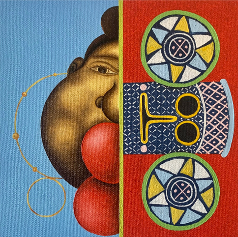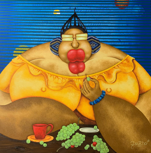 Sa démarche artistique s’inspire des cultures africaines ancestrales et du lien qu’elles entretiennent avec la nature. L’artiste interroge la spiritualité dans l’art, le rapport au vivant et à l’univers. Il développe notamment une série importante de peintures consacrée aux représentations de la femme africaine, abordant, non sans humour, leur place dans le monde.